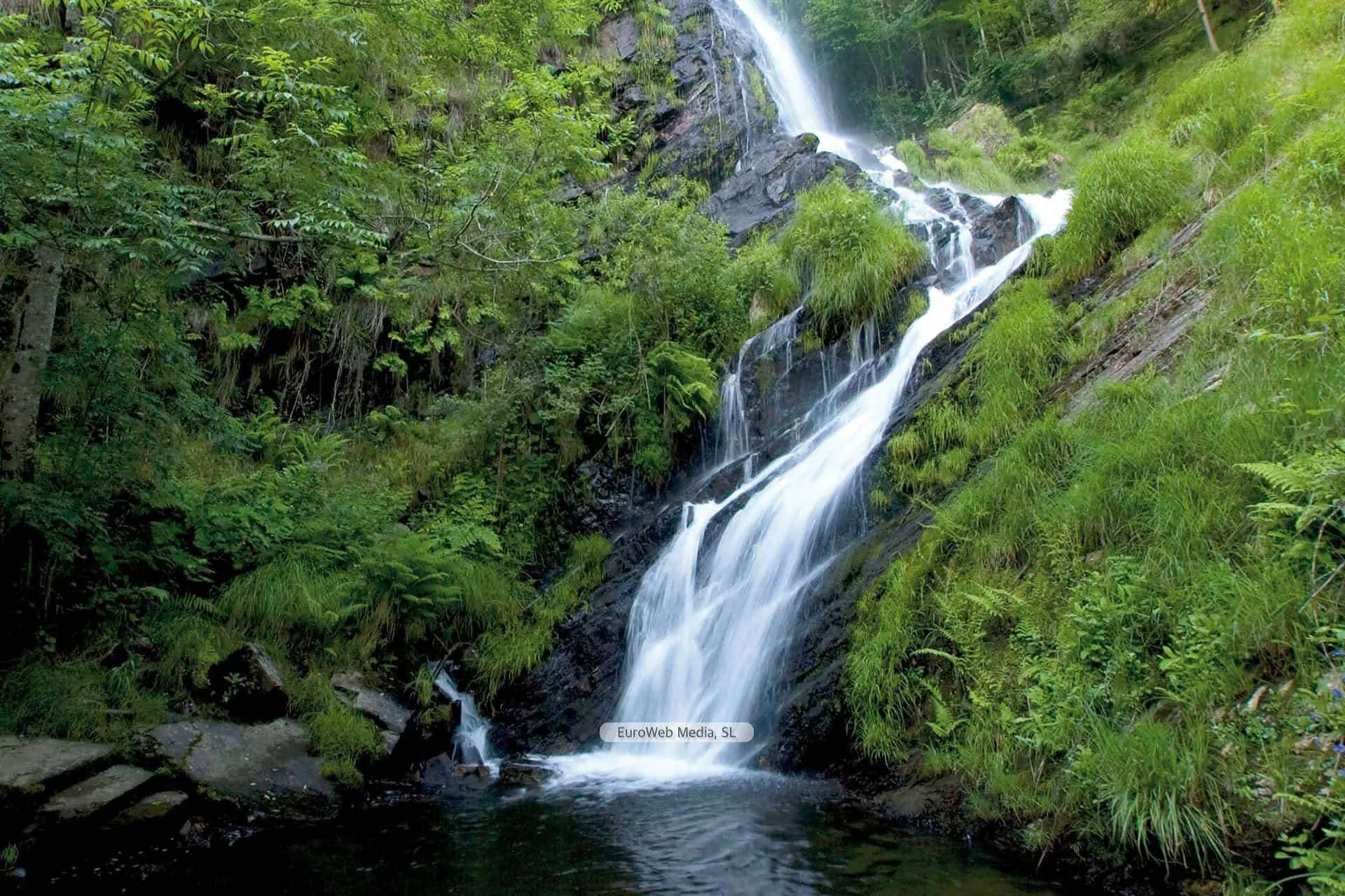 Cascada de Seimeira. Importante formación natural donde finaliza la ruta a la misma. Impactante paisaje. El comienzo del recorrido está en el núcleo de Pumares. Se pasa por la aldea deshabitada de Ancadeira. Rica y tupida vegetació ...