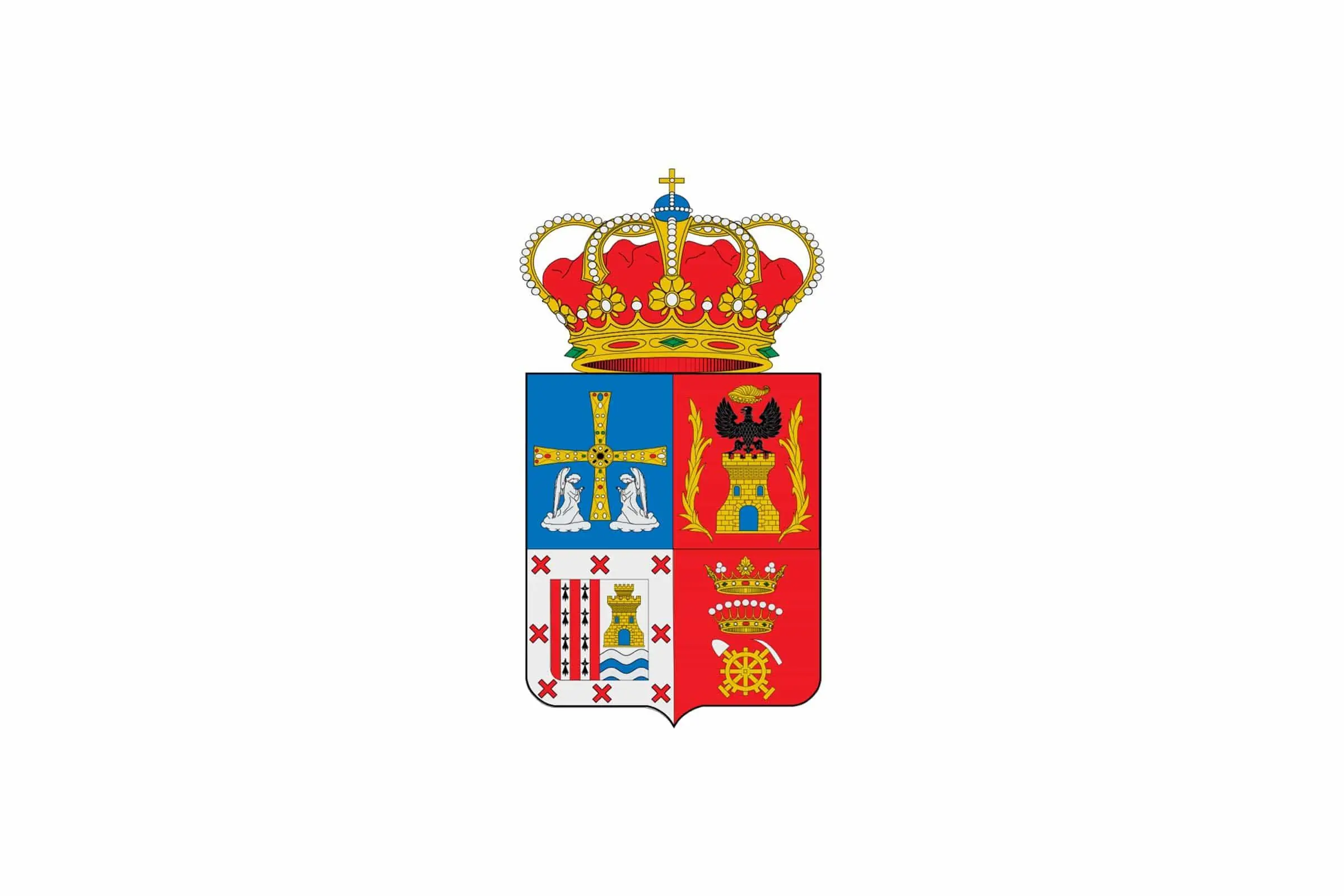 Escudo del concejo de Santa Eulalia de Oscos. Su escudo es cuarteado en cruz. El primer cuartel, en campo de azur, representa la Cruz de los Ángeles, en relación a su dependencia obispal durante siglos. El segundo cuartel, en gules, nos mue ...