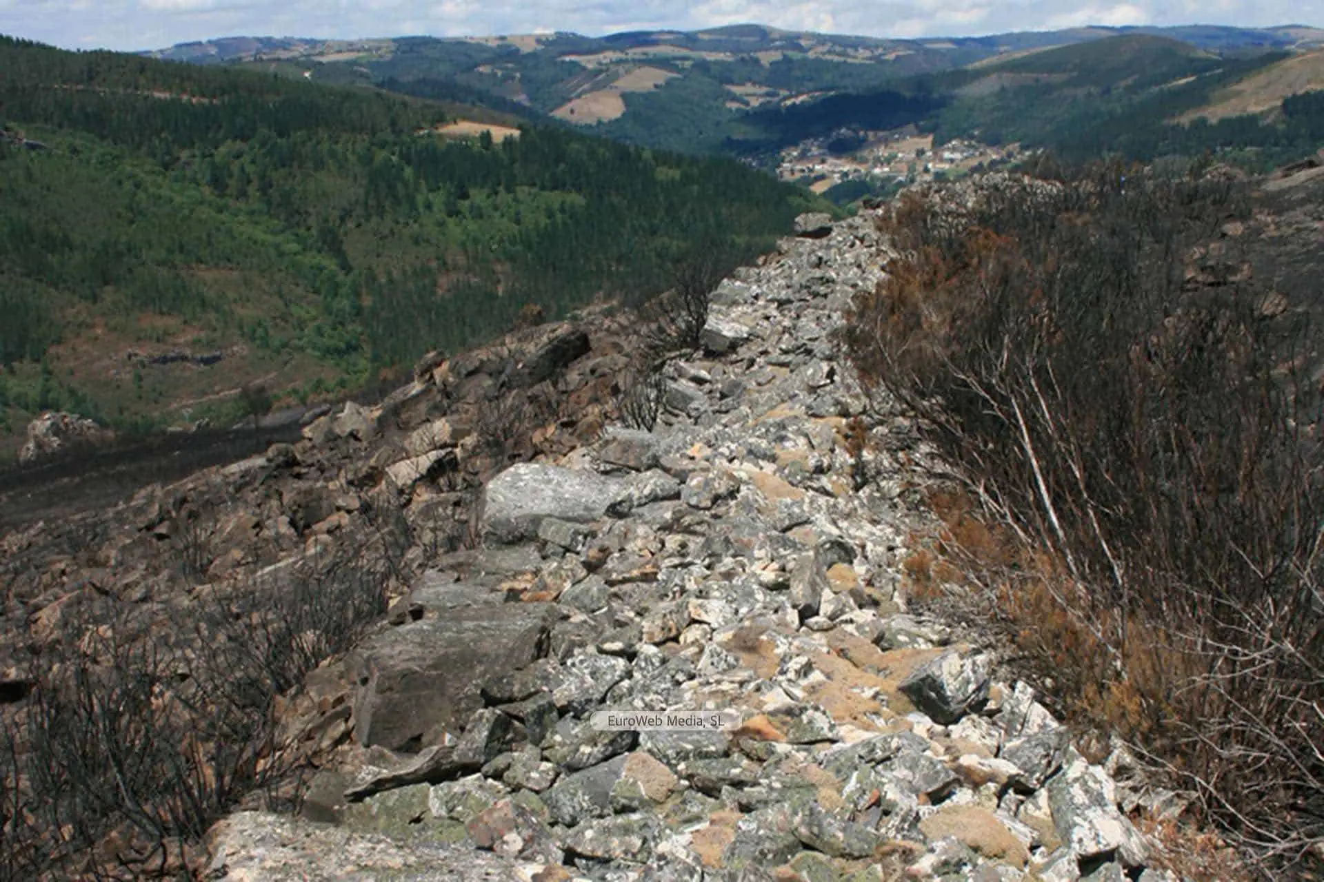 Recinto fortificado del Cortín dos Mouros. Acceso: Carretera SE-1 de Santa Eulalia hacia el límite con la provincia de Lugo, cerca de Brañavella. El recinto fortificado del Cortín dos Mouros es por su singularidad de muy difícil i ...